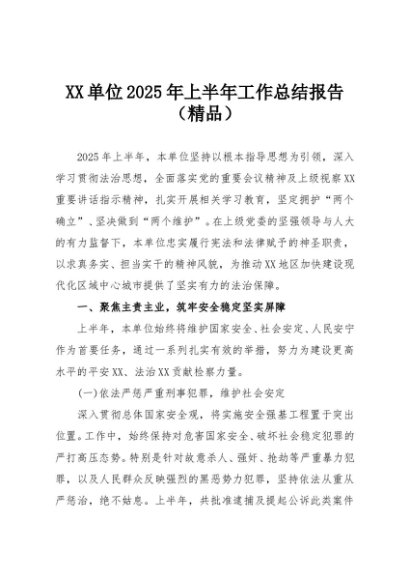 【七哥公文】2025年:XX单位2025年上半年工作总结报告(精品)+更多免费公文+VX:QiGeGongWen2024