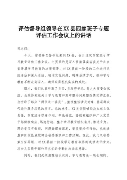 【七哥公文】2025年:评估督导组领导在XX县四家班子专题评估工作会议上的讲话+更多免费公文+VX:QiGeGongWen2024