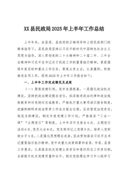 / 【七哥公文】2025年:XX县民政局2025年上半年工作总结+更多免费公文+VX:QiGeGongWen2024