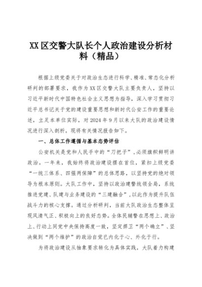 / 【七哥公文】2025年:XX区交警大队长个人政治建设分析材料(精品)+更多免费公文+VX:QiGeGongWen2024
