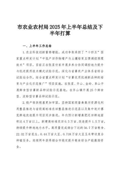 / 【七哥公文】2025年:市农业农村局2025年上半年总结及下半年打算+更多免费公文+VX:QiGeGongWen2024