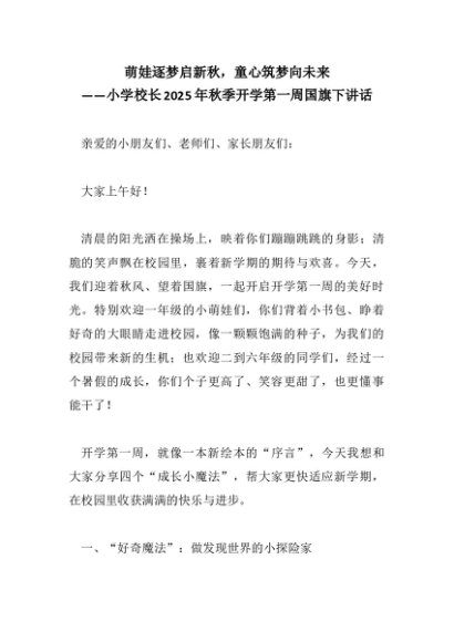 【七哥公文】2025年:萌娃逐梦启新秋,童心筑梦向未来 ——小学校长2025年秋季开学第一周国旗下讲话+更多免费公文+VX:QiGeGongWen2024