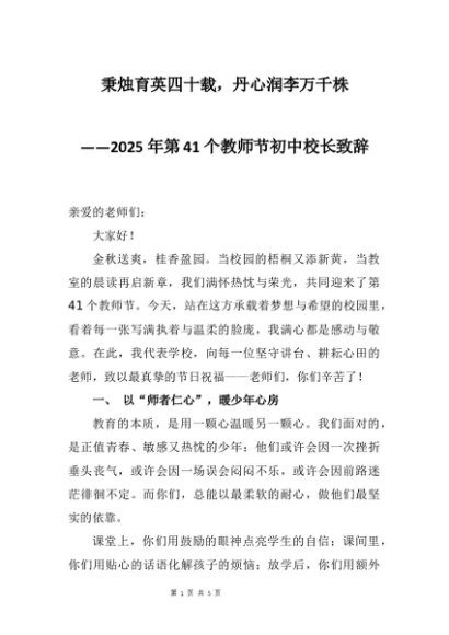 【七哥公文】2025年:2025年第41个教师节初中校长致辞:秉烛育英四十载,丹心润李万千株+更多免费公文+VX:QiGeGongWen2024
