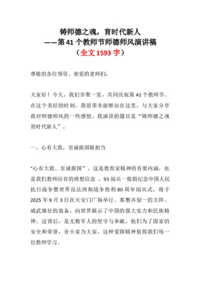 【七哥公文】2025年:铸师德之魂,育时代新人——第41个教师节师德师风演讲稿+更多免费公文+VX:QiGeGongWen2024