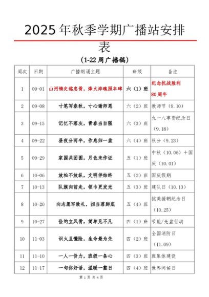 【七哥公文】2025年:2025年秋季红领巾广播站广播稿+更多免费公文+VX:QiGeGongWen2024