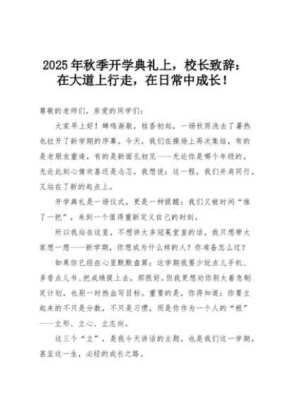 【七哥公文】2025年:2025秋季开学第一课校长致辞:从秋日启程,向“更好的自己”出发!+更多免费公文+VX:QiGeGongWen2024