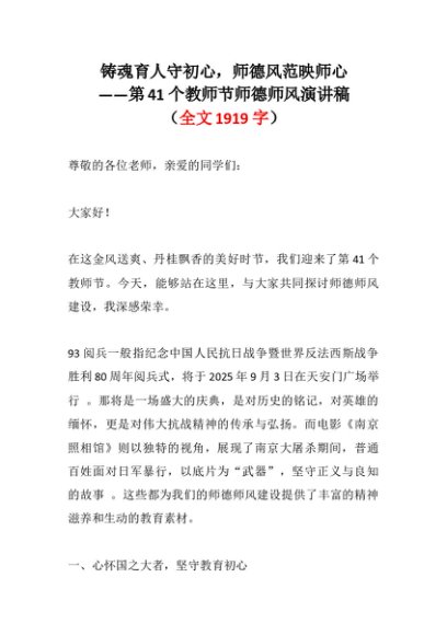 【七哥公文】2025年:铸魂育人守初心,师德风范映师心——第41个教师节师德师风演讲稿+更多免费公文+VX:QiGeGongWen2024
