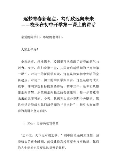 【七哥公文】2025年:逐梦青春新起点,笃行致远向未来 ——校长在初中开学第一课上的讲话+更多免费公文+VX:QiGeGongWen2024
