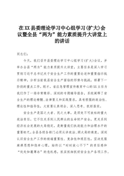 【七哥公文】2025年:在XX县委理论学习中心组学习(扩大)会议暨全县“两为”能力素质提升大讲堂上的讲话+更多免费公文+VX:QiGeGongWen2024