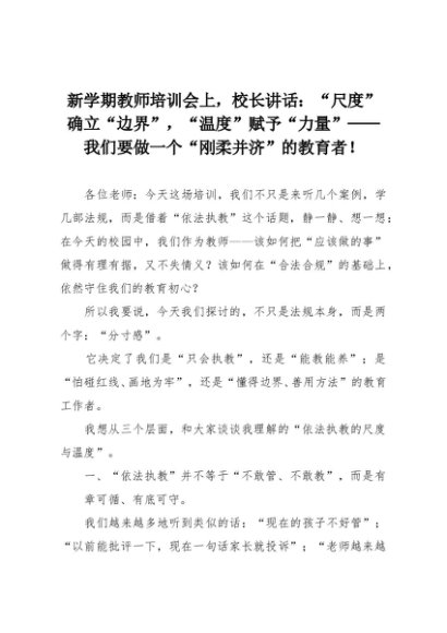 【七哥公文】2025年:新学期教师培训会上,校长讲话:“尺度”确立“边界”,“温度”赋予“力量”+更多免费公文+VX:QiGeGongWen2024