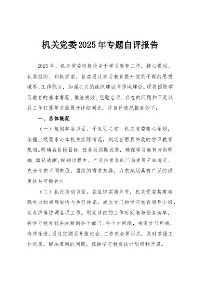/ 【七哥公文】2025年:机关党委2025年专题自评报告+更多免费公文+VX:QiGeGongWen2024