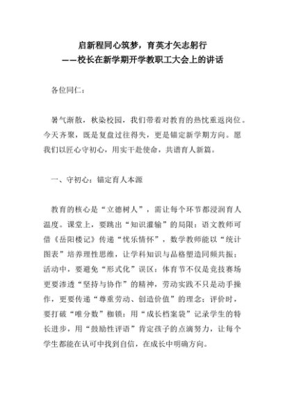【七哥公文】2025年:启新程同心筑梦,育英才矢志躬行 ——校长在新学期开学教职工大会上的讲话+更多免费公文+VX:QiGeGongWen2024