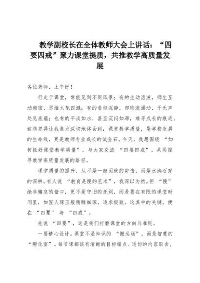 【七哥公文】2025年:教学副校长在全体教师大会上讲话:“四要四戒”聚力课堂提质,共推教学高质量发展+更多免费公文+VX:QiGeGongWen2024