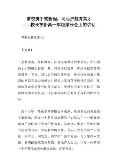 【七哥公文】2025年:家校携手筑新程,同心护航育英才 ——校长在新高一年级家长会上的讲话+更多免费公文+VX:QiGeGongWen2024