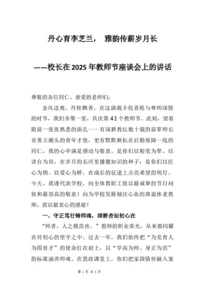【七哥公文】2025年:校长在2025年教师节座谈会上的讲话:丹心育李芝兰, 雅韵传薪岁月长+更多免费公文+VX:QiGeGongWen2024