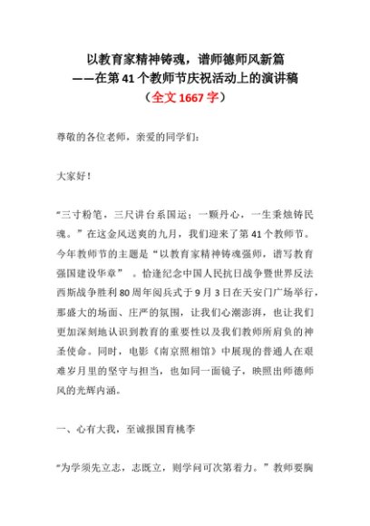 【七哥公文】2025年:以教育家精神铸魂,谱师德师风新篇——在第41个教师节庆祝活动上的演讲稿+更多免费公文+VX:QiGeGongWen2024