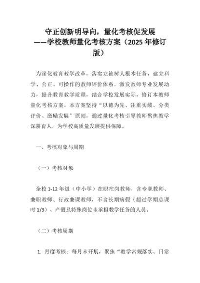 【七哥公文】2025年:守正创新明导向,量化考核促发展 ——学校教师量化考核方案(2025年修订版)+更多免费公文+VX:QiGeGongWen2024