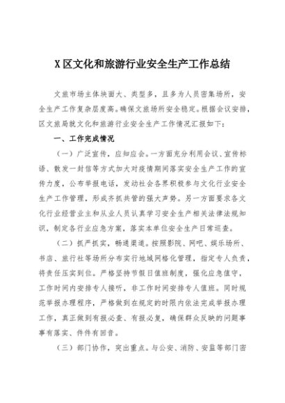 / 【七哥公文】2025年:X区文化和旅游行业安全生产工作总结+更多免费公文+VX:QiGeGongWen2024