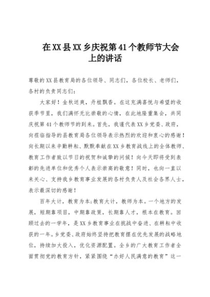 / 【七哥公文】2025年:在XX县XX乡庆祝第41个教师节大会上的讲话+更多免费公文+VX:QiGeGongWen2024