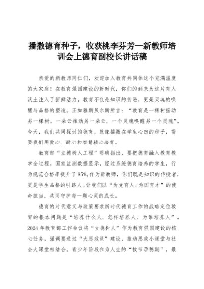 【七哥公文】2025年:播撒德育种子,收获桃李芬芳—新教师培训会上德育副校长讲话稿+更多免费公文+VX:QiGeGongWen2024