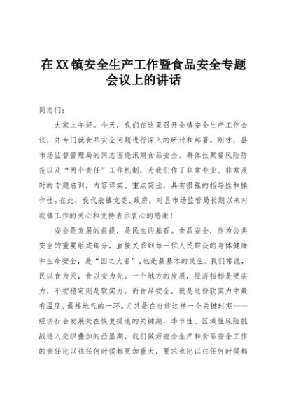 / 【七哥公文】2025年:在XX镇安全生产工作暨食品安全专题会议上的讲话+更多免费公文+VX:QiGeGongWen2024