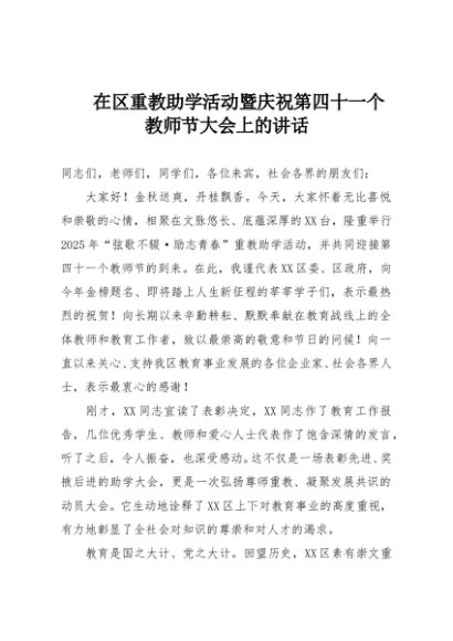 / 【七哥公文】2025年:在区重教助学活动暨庆祝第四十一个教师节大会上的讲话+更多免费公文+VX:QiGeGongWen2024