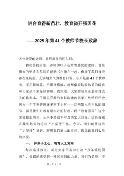 【七哥公文】2025年:2025年第41个教师节校长致辞:讲台育得新苗壮,教育浇开强国花+更多免费公文+VX:QiGeGongWen2024