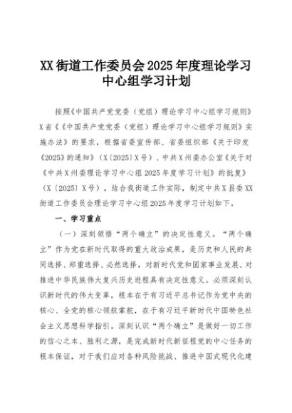 / 【七哥公文】2025年:XX街道工作委员会2025年度理论学习中心组学习计划+更多免费公文+VX:QiGeGongWen2024