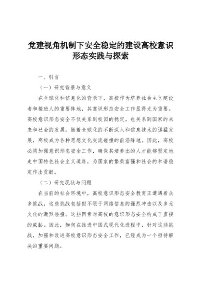 / 【七哥公文】2025年:党建视角机制下安全稳定的建设高校意识形态实践与探索+更多免费公文+VX:QiGeGongWen2024