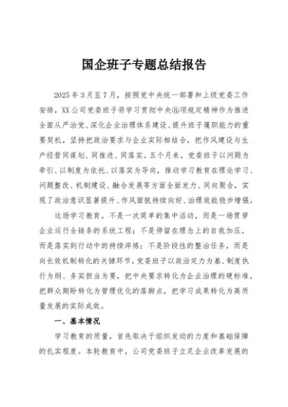 / 【七哥公文】2025年:国企班子专题总结报告+更多免费公文+VX:QiGeGongWen2024