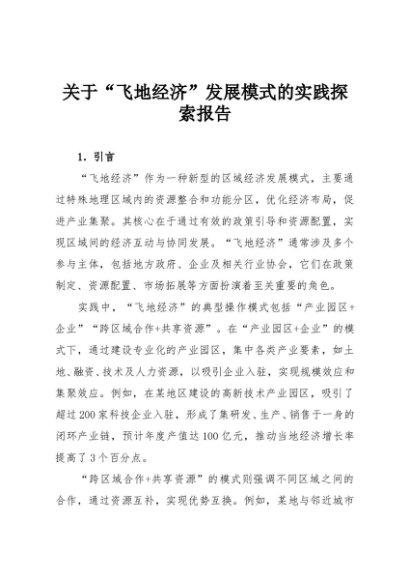【七哥公文】2025年:关于“飞地经济”发展模式的实践探索报告+更多免费公文+VX:QiGeGongWen2024
