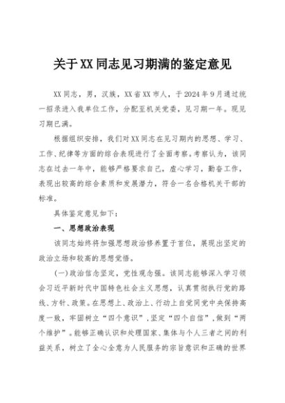 【七哥公文】2025年:关于XX同志见习期满的鉴定意见2篇+更多免费公文+VX:QiGeGongWen2024