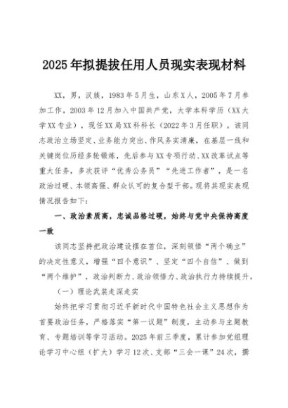 / 【七哥公文】2025年:2025年拟提拔任用人员现实表现材料+更多免费公文+VX:QiGeGongWen2024