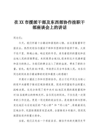 / 【七哥公文】2025年:在XX市援派干部及东西部协作挂职干部座谈会上的讲话+更多免费公文+VX:QiGeGongWen2024