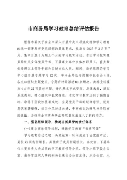 / 【七哥公文】2025年:市商务局学习教育总结评估报告+更多免费公文+VX:QiGeGongWen2024