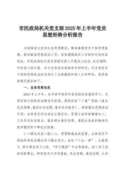 【七哥公文】2025年:市民政局机关党支部2025年上半年党员思想形势分析报告+更多免费公文+VX:QiGeGongWen2024
