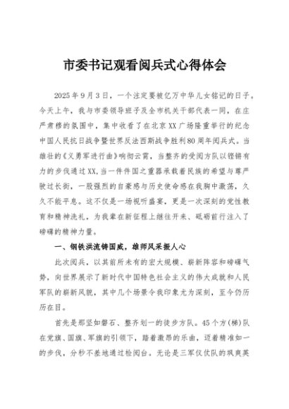 / 【七哥公文】2025年:市委书记观看阅兵式心得体会+更多免费公文+VX:QiGeGongWen2024