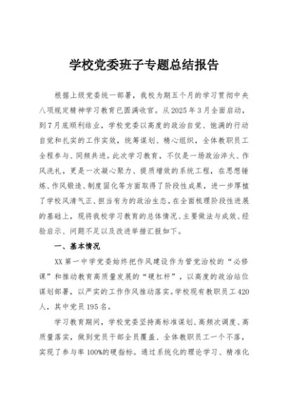 / 【七哥公文】2025年:学校党委班子专题总结报告+更多免费公文+VX:QiGeGongWen2024