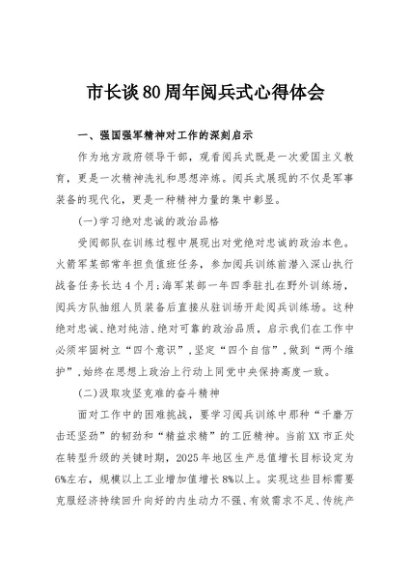 / 【七哥公文】2025年:市长谈80周年阅兵式心得体会+更多免费公文+VX:QiGeGongWen2024