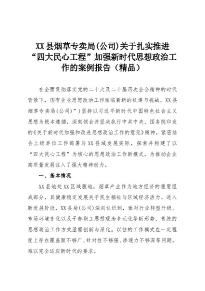 【七哥公文】2025年:XX县烟草专卖局(公司)关于扎实推进“四大民心工程”加强新时代思想政治工作的案例报告(精品)+更多免费公文+VX:QiGeGongWen2024