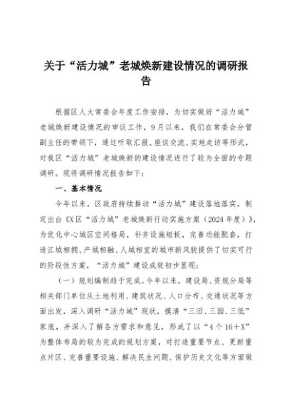 / 【七哥公文】2025年:关于“活力城”老城焕新建设情况的调研报告+更多免费公文+VX:QiGeGongWen2024