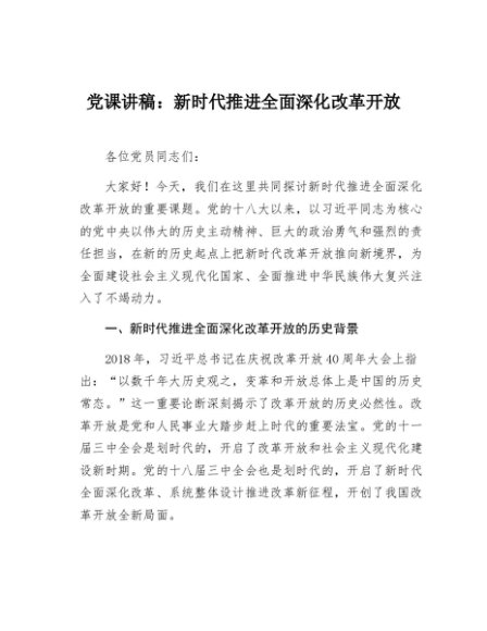 / 【七哥公文】2025年:党_课讲稿:新时代推进全面深化改革开放+更多免费公文+VX:QiGeGongWen2024
