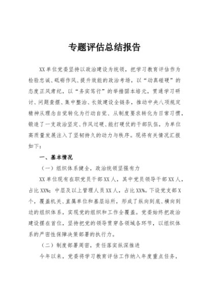 【七哥公文】2025年:专题评估总结报告+更多免费公文+VX:QiGeGongWen2024
