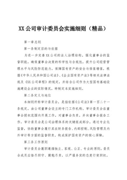 【七哥公文】2025年:XX公司审计委员会实施细则(精品)+更多免费公文+VX:QiGeGongWen2024
