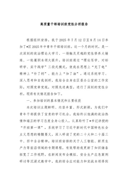 / 【七哥公文】2025年:高质量干部培训班党性分析报告+更多免费公文+VX:QiGeGongWen2024
