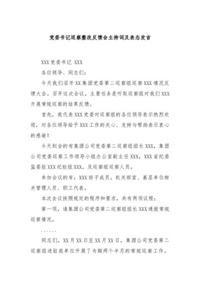 / 【七哥公文】2025年:党委书记巡察整改反馈会主持词及表态发言+更多免费公文+VX:QiGeGongWen2024