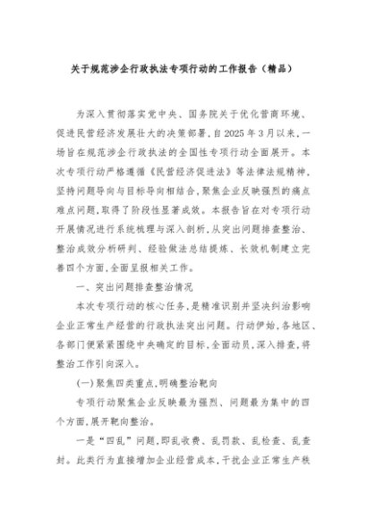 / 【七哥公文】2025年:关于规范涉企行政执法专项行动的工作报告(精品)+更多免费公文+VX:QiGeGongWen2024