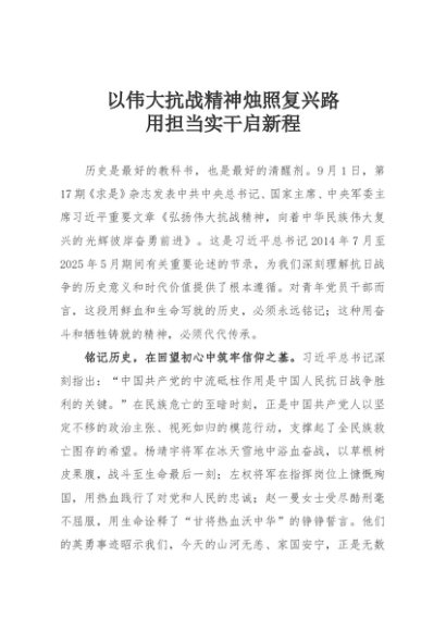 / 【七哥公文】2025年:以伟大抗战精神烛照复兴路,用担当实干启新程+更多免费公文+VX:QiGeGongWen2024