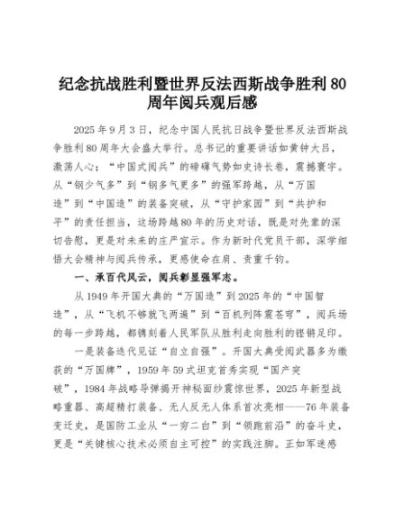 【七哥公文】2025年:纪念抗战胜利暨世界反法西斯战争胜利80周年阅兵观后感+更多免费公文+VX:QiGeGongWen2024
