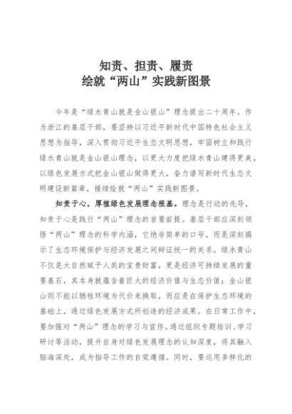 / 【七哥公文】2025年:知责、担责、履责,绘就“两山”实践新图景+更多免费公文+VX:QiGeGongWen2024